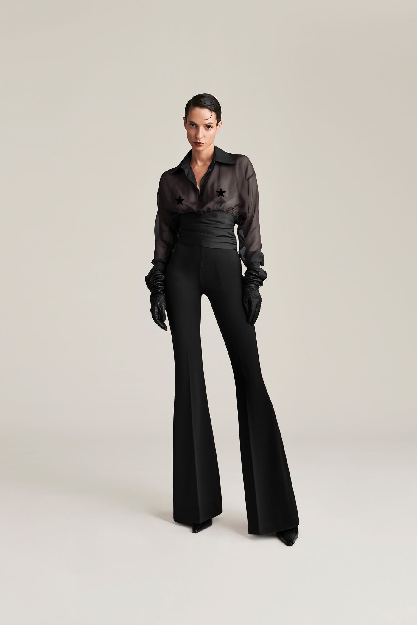 I PANTALONI SIENNA ACCENDONO L'ENERGIA DELLE ATMOSFERE DISCO ANNI ’70. REALIZZATI IN TESSUTO STRETCH DALLA MANO FRESCA, SI CARATTERIZZANO PER LA PIEGA STIRATA CENTRALE E IL TAGLIO FLARED CHE SLANCIA LA SILHOUETTE E LI RENDE COMODI DA INDOSSARE FROM DAY TO NIGHT.