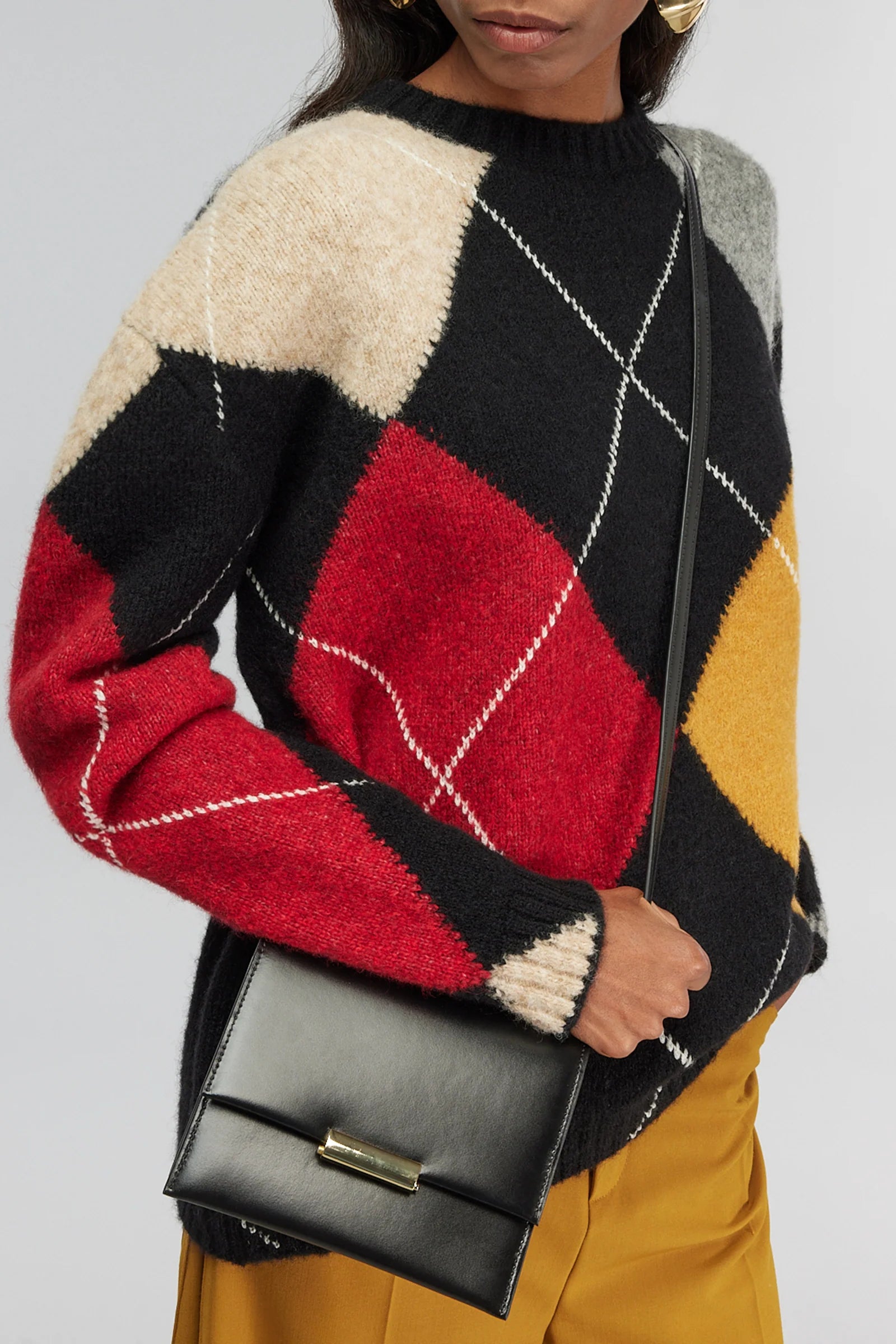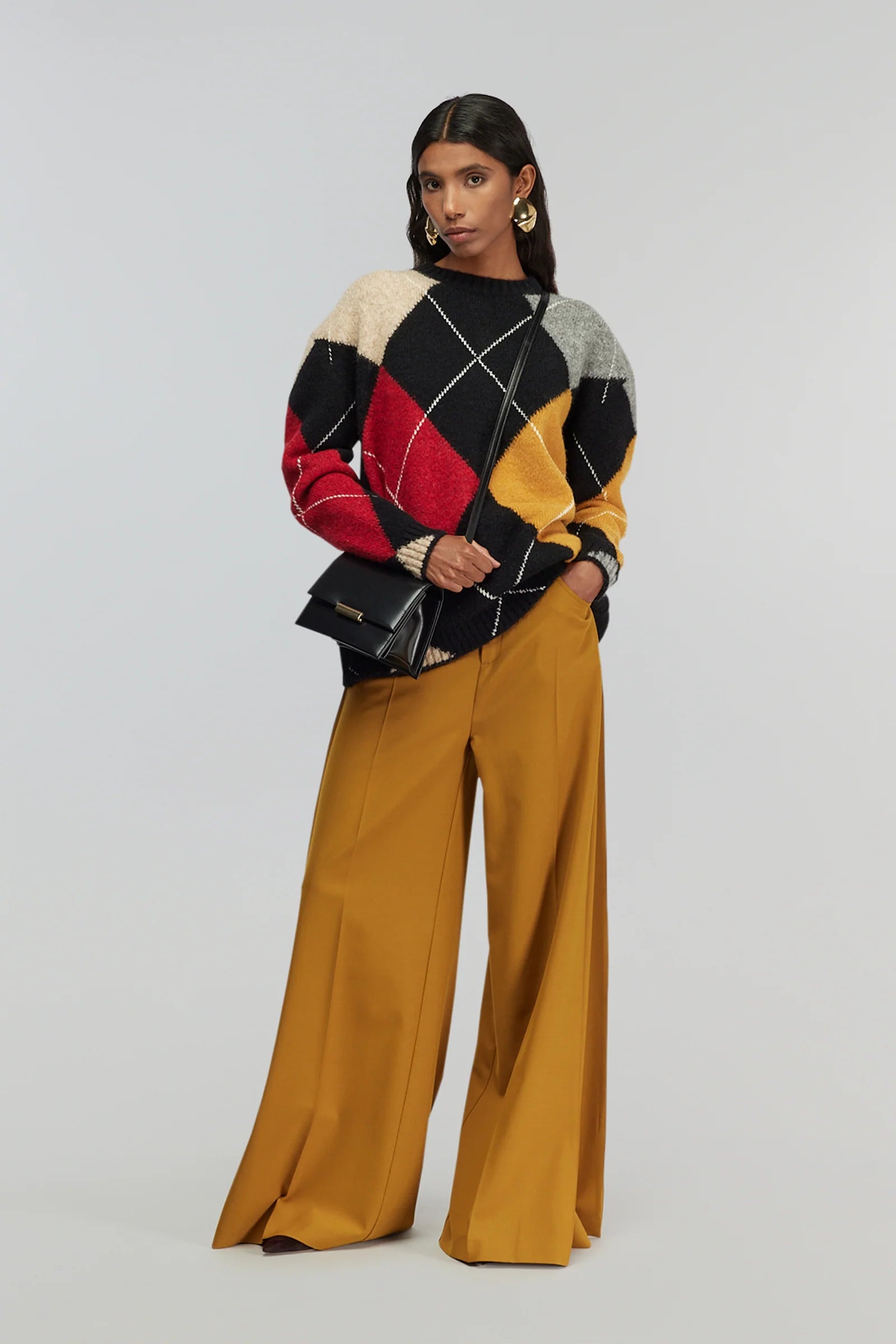 Maglia a rombi in misto alpaca. Manica lunga, lunghezza bacino, vestibilità over.