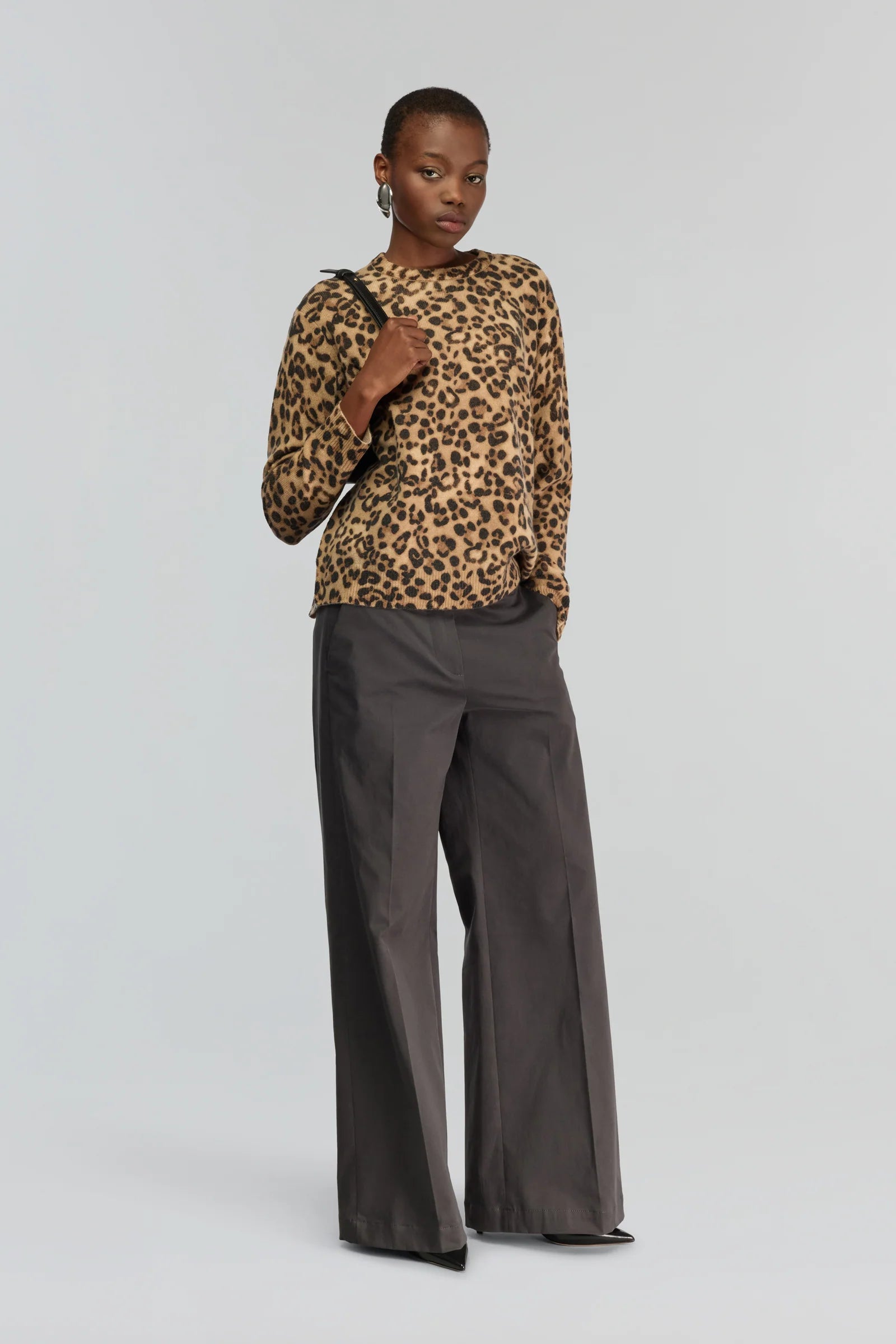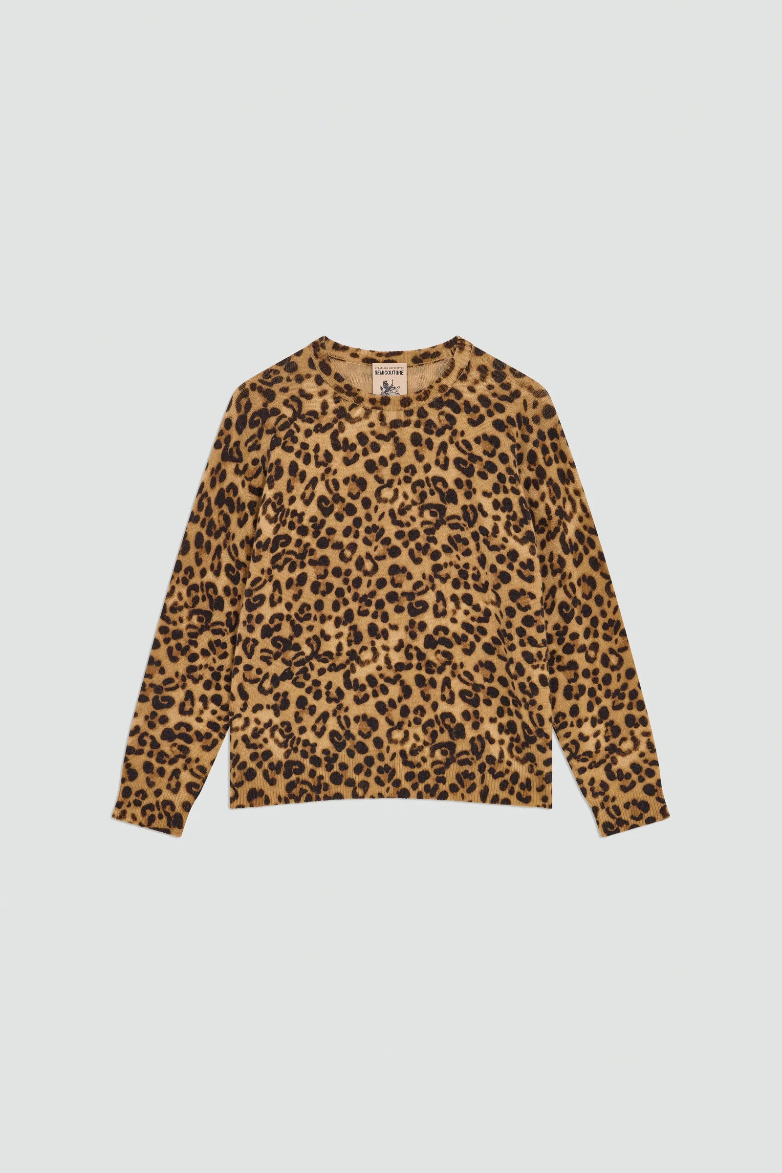 Maglia in misto cachemire stampato macula. Modello girocollo a manica lunga. Lunghezza bacino, vestibilità regular.