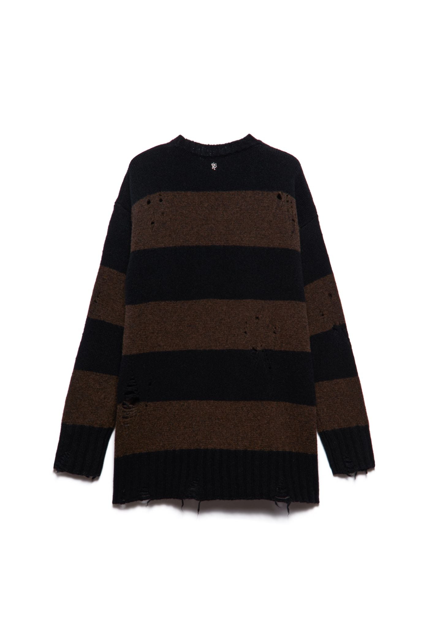 PERFETTO PER LOOK DISINVOLTI MA DECISI, IL MAGLIONE ALY REINTERPRETA IL CLASSICO A RIGHE CON UN TWIST CONTEMPORANEO. LA LAVORAZIONE EFFETTO DESTROYED E IL FIT OVERSIZE LO RENDONO UN ALLEATO EASY, DA ABBINARE A DENIM, MINIGONNE O LAYERING PIÙ AUDACI.