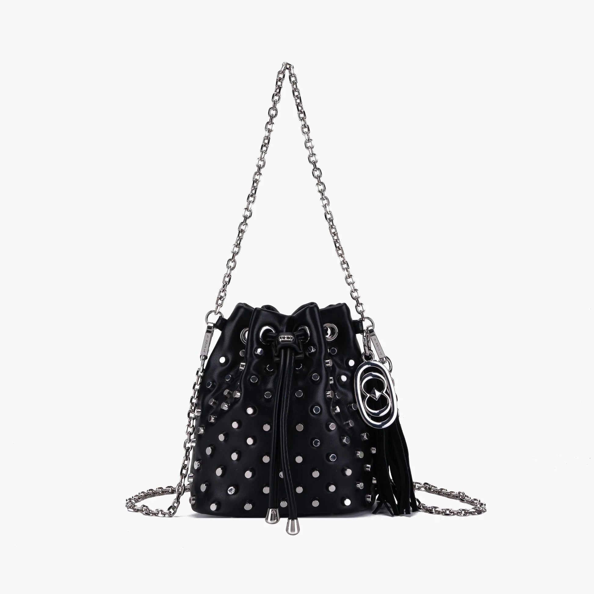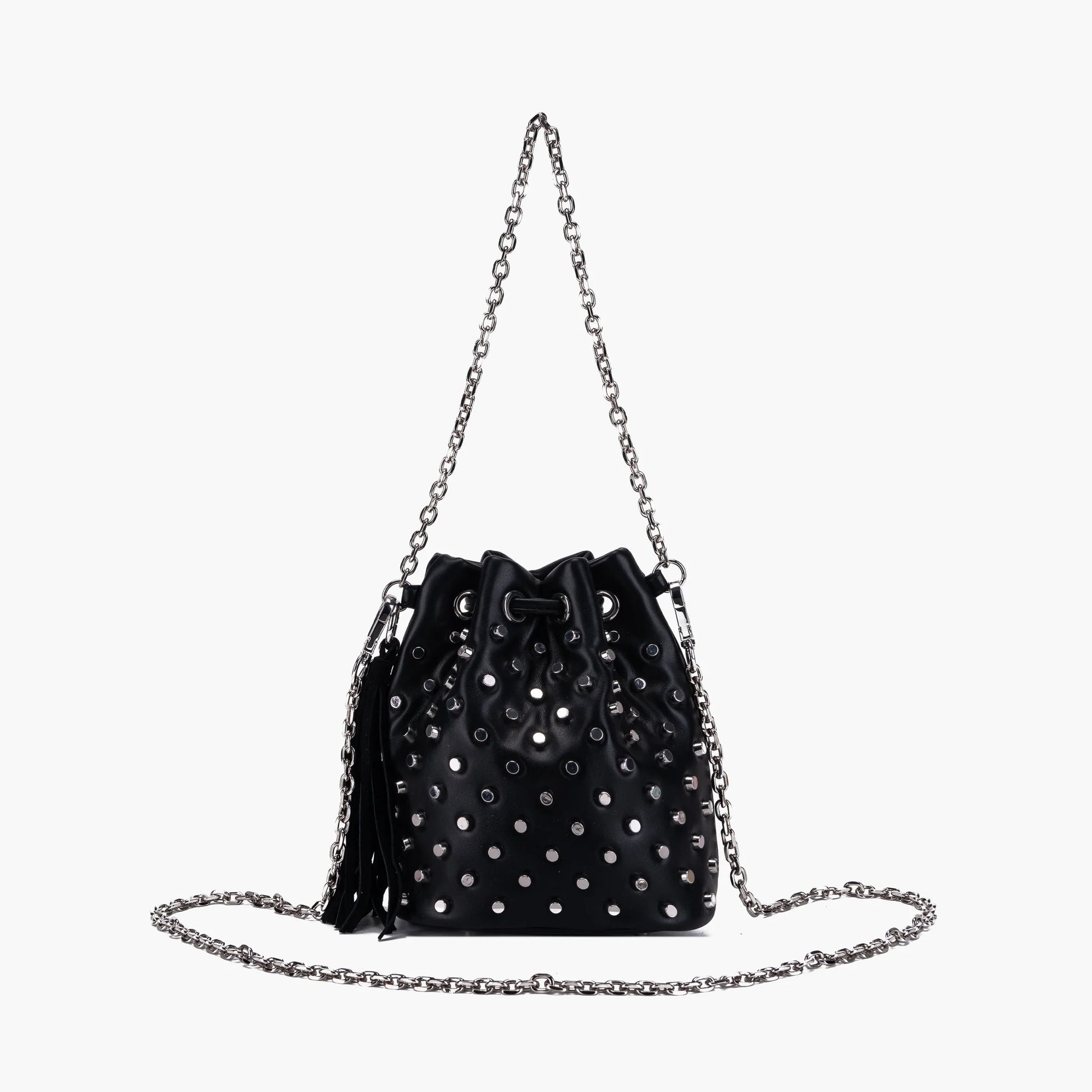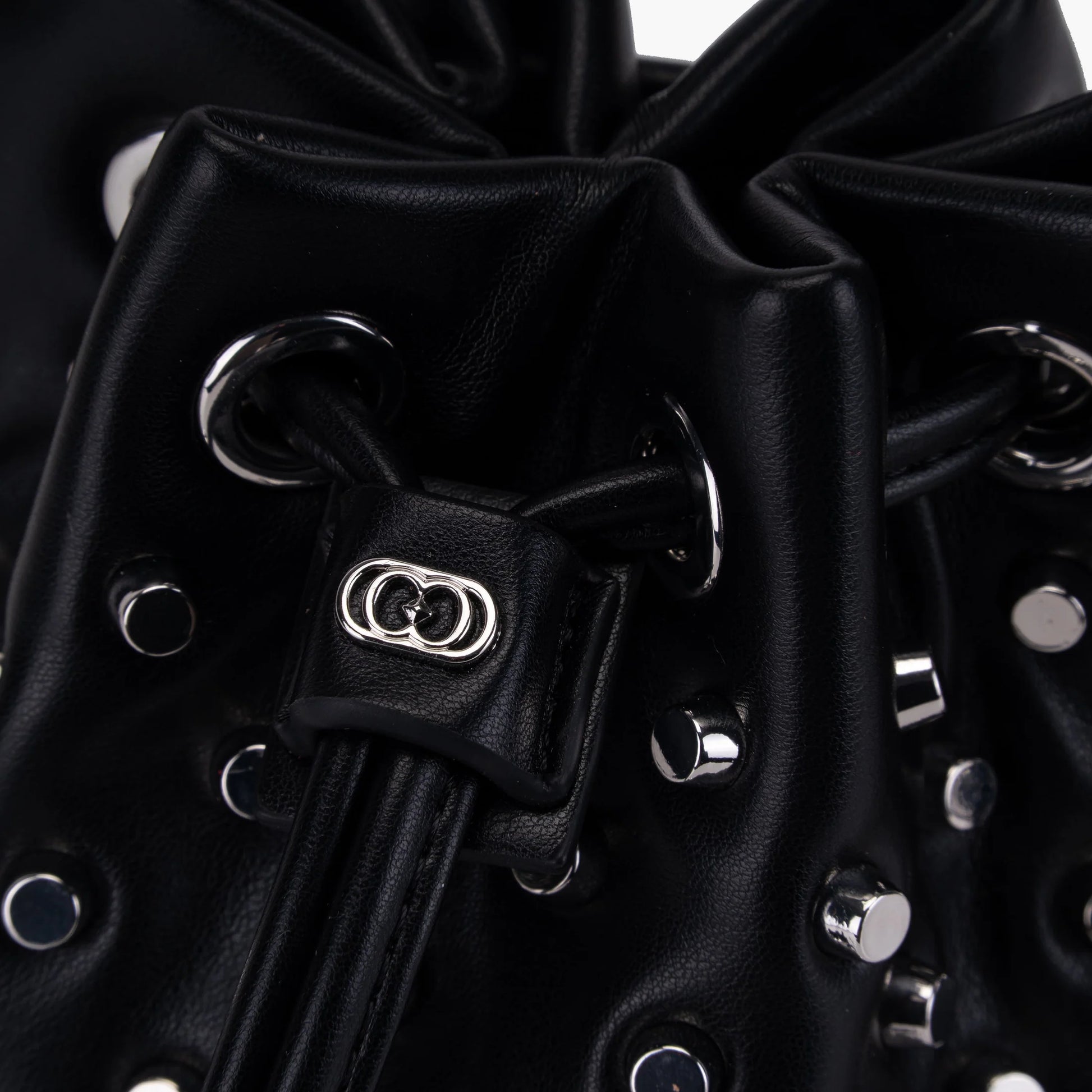 Piccolo secchiello in ecopelle con borchie applicate, manico e tracolla rimovibili